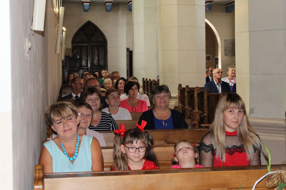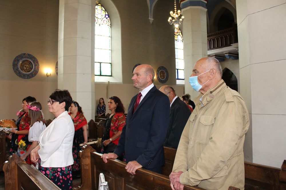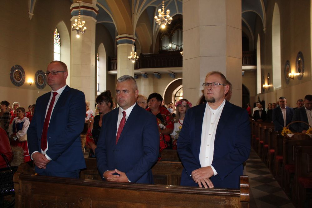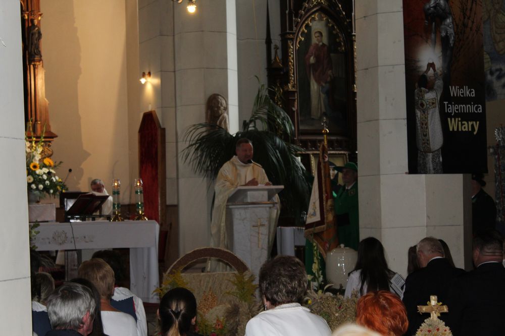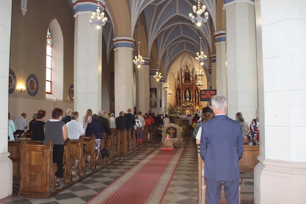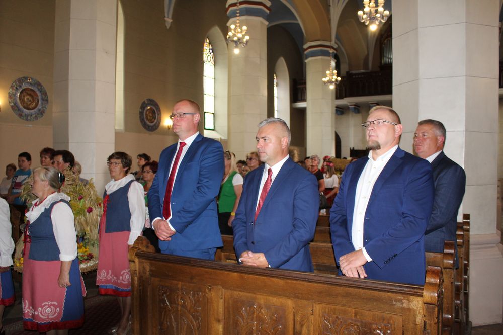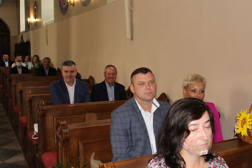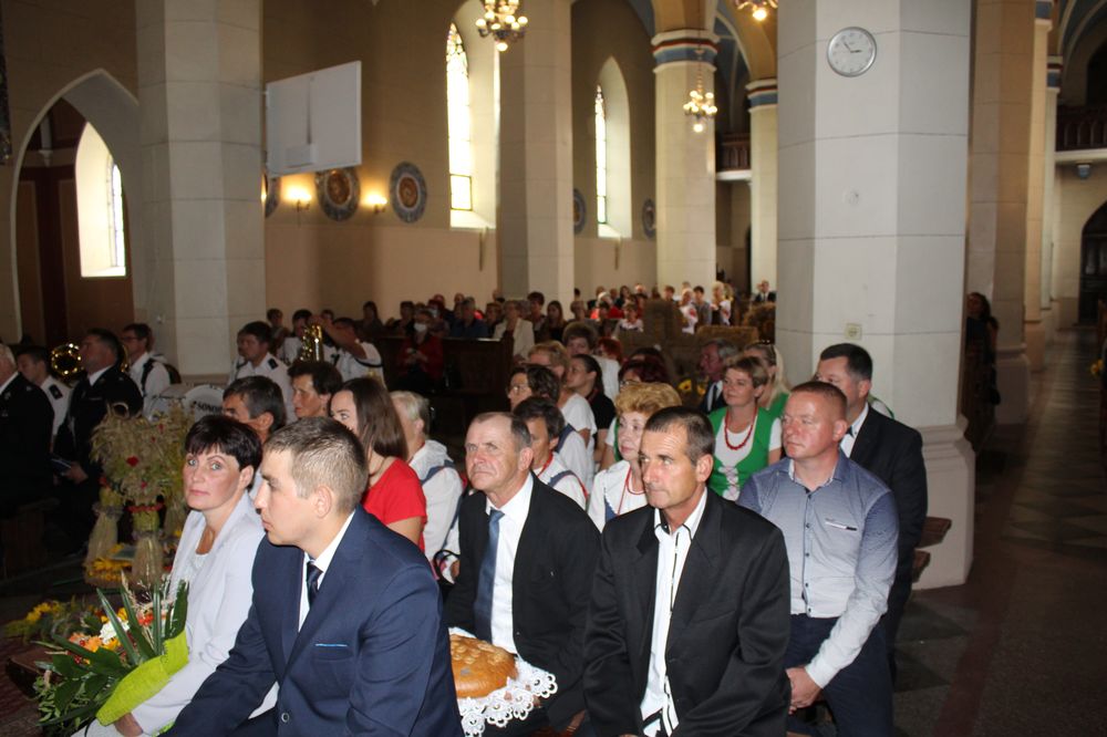 Delegacje ze wszystkich sołectw, pszczelarze, myśliwi, strażacy zgromadzili się na uroczystej mszy świętej dziękczynnej, której przewodniczył Proboszcz Ks. Kanonik Grzegorz Szczepaniak.
