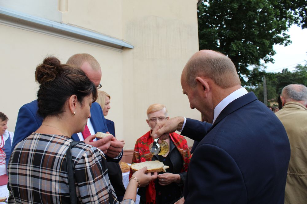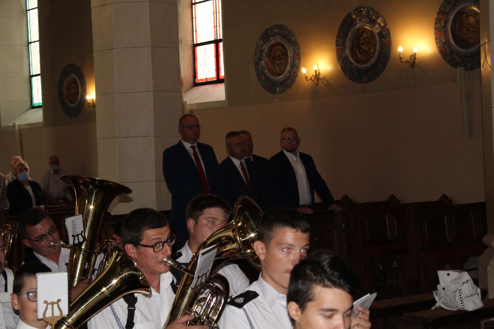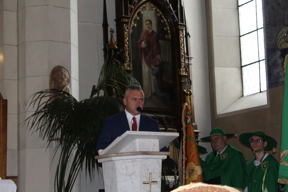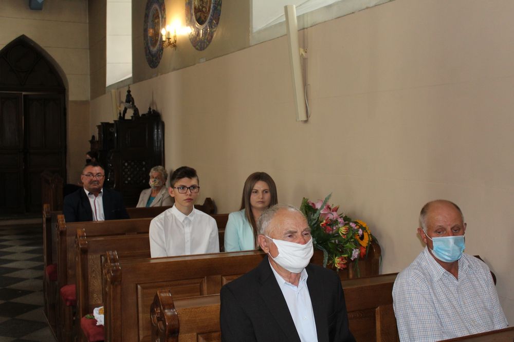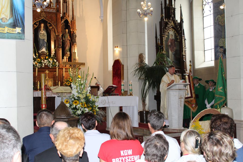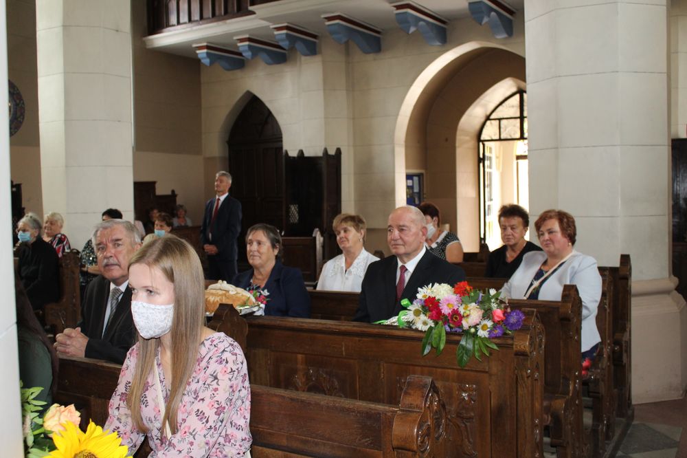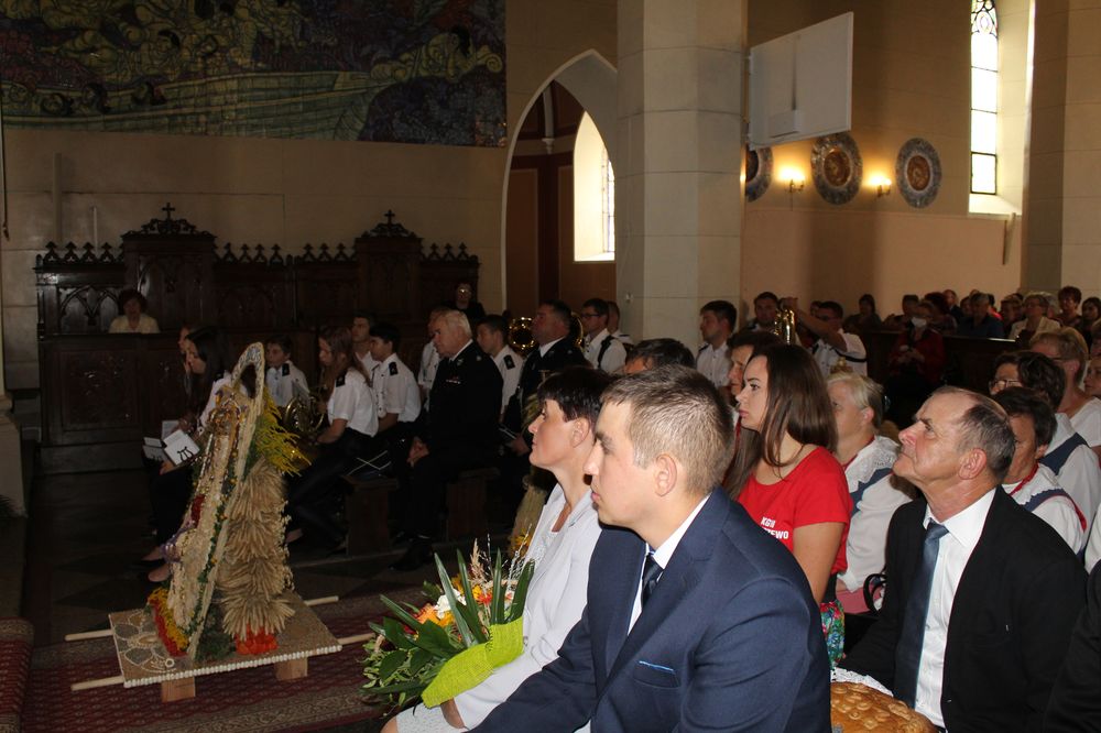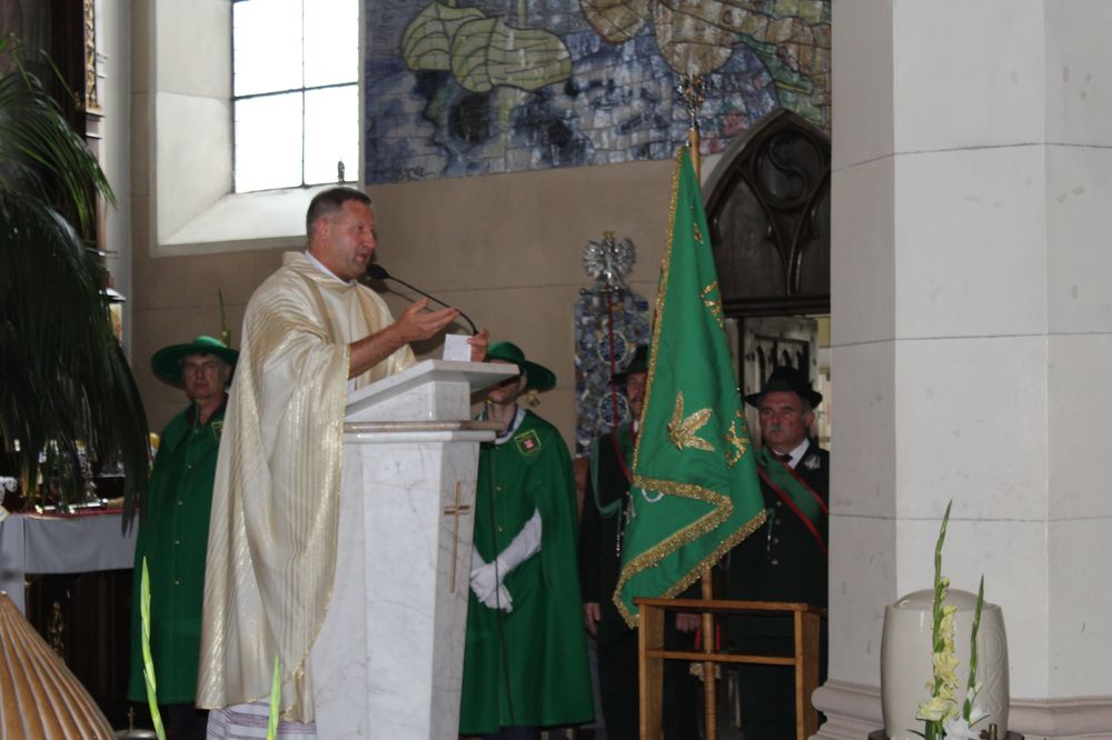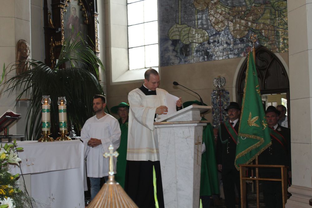 Delegacje ze wszystkich sołectw, pszczelarze, myśliwi, strażacy zgromadzili się na uroczystej mszy świętej dziękczynnej, której przewodniczył Proboszcz Ks. Kanonik Grzegorz Szczepaniak.