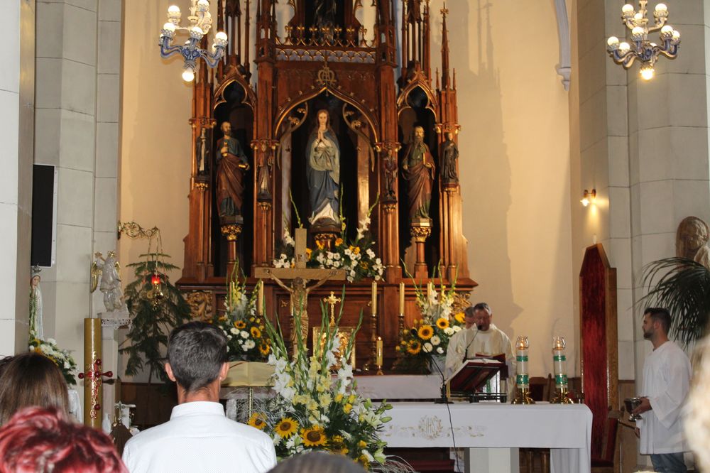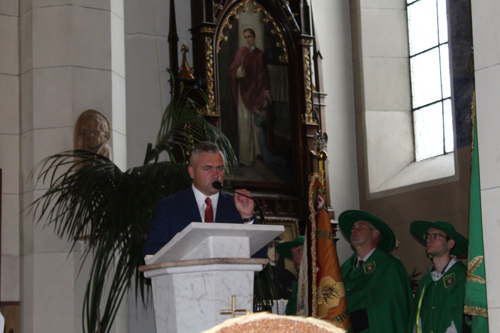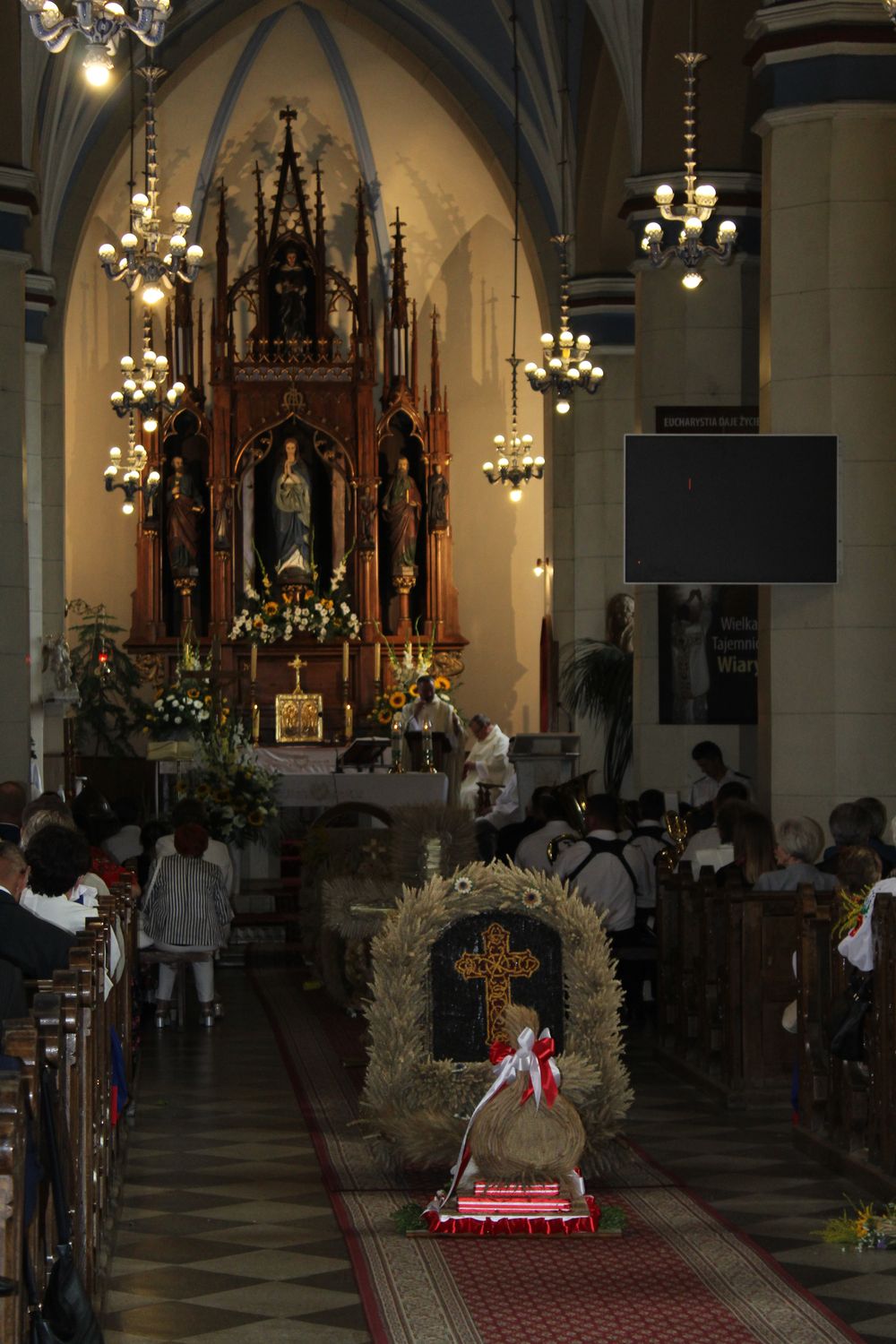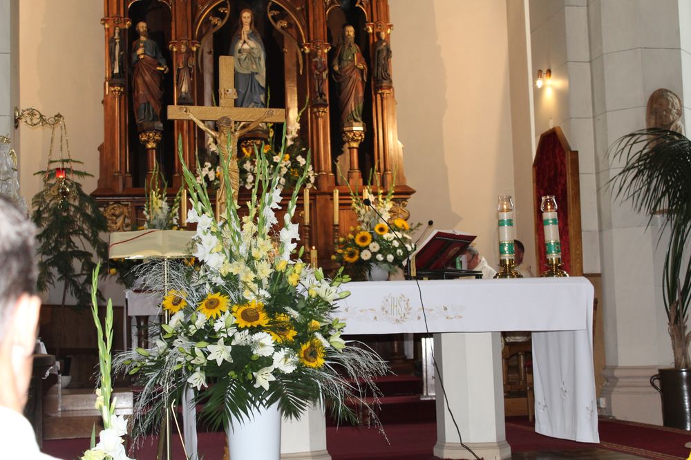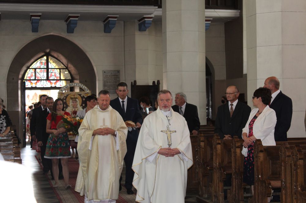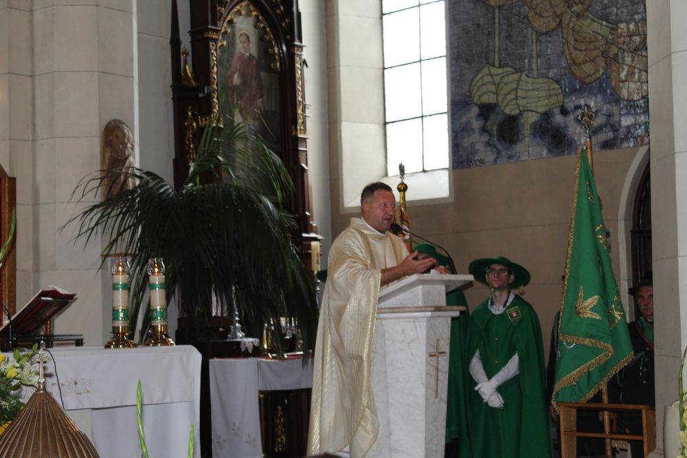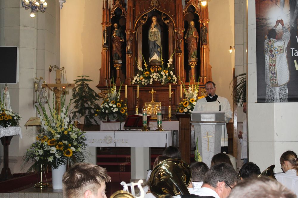 Delegacje ze wszystkich sołectw, pszczelarze, myśliwi, strażacy zgromadzili się na uroczystej mszy świętej dziękczynnej, której przewodniczył Proboszcz Ks. Kanonik Grzegorz Szczepaniak.